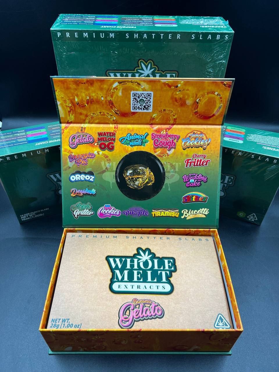 Whole melt banana gelato is a live resin shatter that can be produced from the crossing of strawberry banana and Bubblegum strains to give you a more flavorful experience. Live resin shatter have a rich potency and aroma.